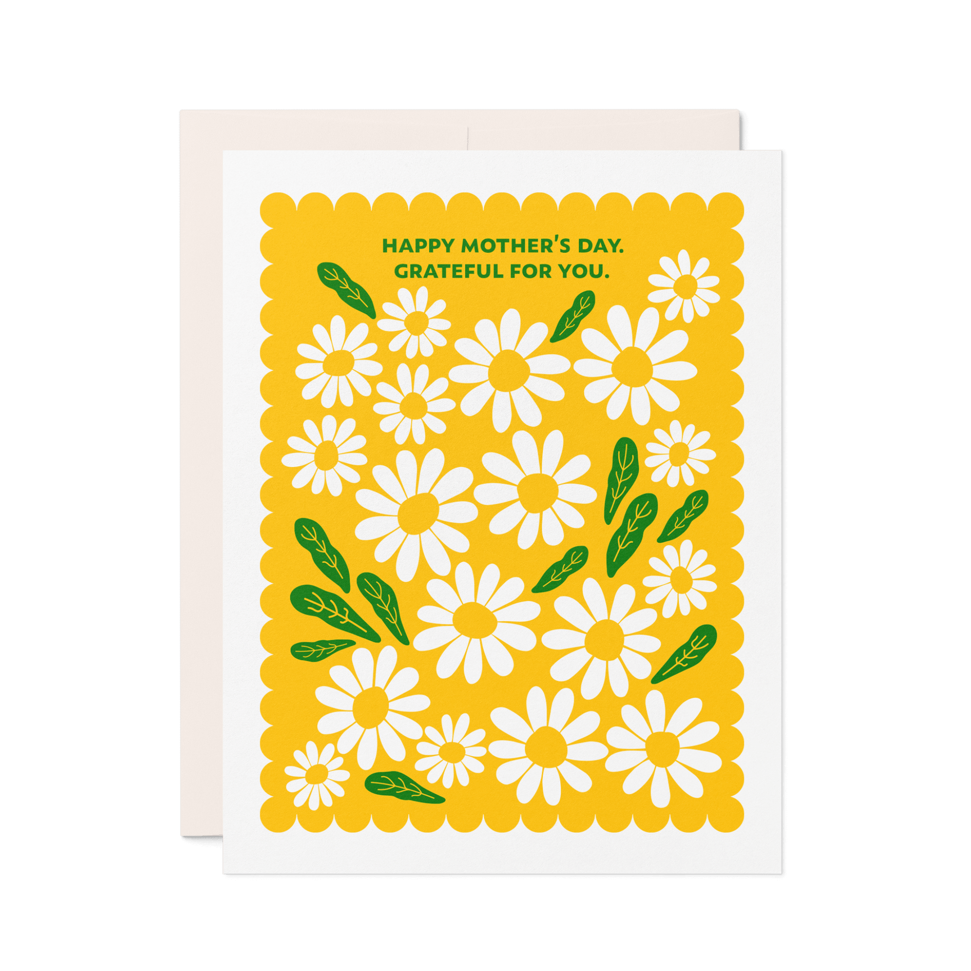 A card as warm and cheerful as she is. Featuring the message “Happy Mother’s Day. Grateful For You.” surrounded by hand-illustrated daisies, this letterpress card is perfect for moms, stepmoms, or anyone you want to thank on Mother’s Day.